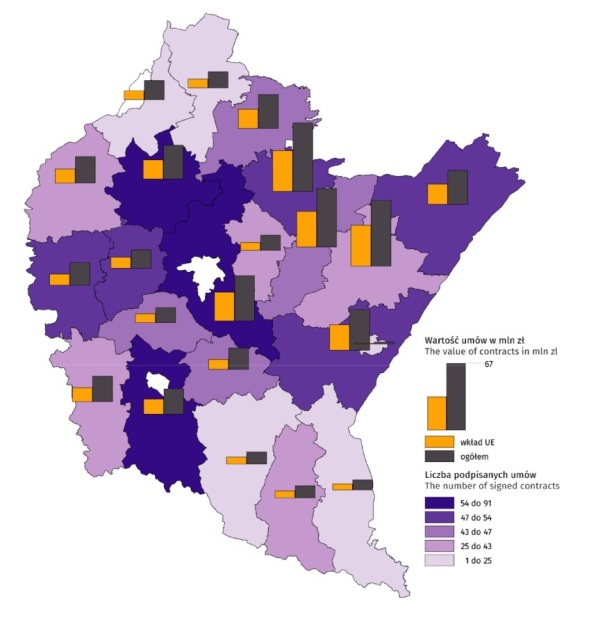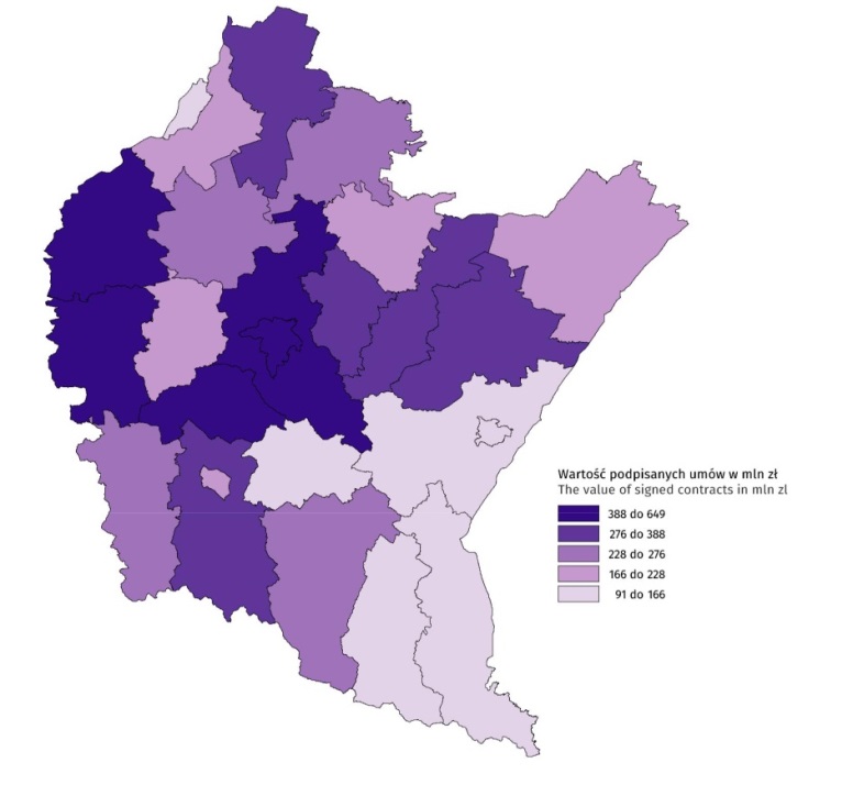 Wartość podpisanych umów o dofinansowanie projektów w ramach RPO WP 2014-2020 na koniec listopada 2018 r.