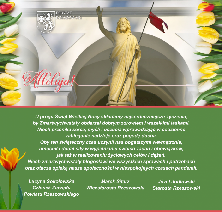 WIELKANOCNE ŻYCZENIA DLA MIESZKAŃCÓW POWIATU RZESZOWSKIEGO ORAZ WSZYSTKICH INTERNAUTÓW
