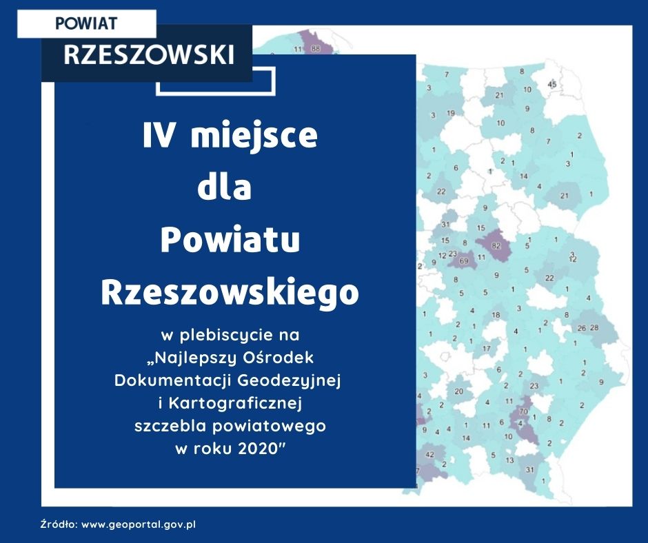 IV miejsce dla Powiatu Rzeszowskiego w plebiscycie na „Najlepszy Ośrodek Dokumentacji Geodezyjnej i Kartograficznej.