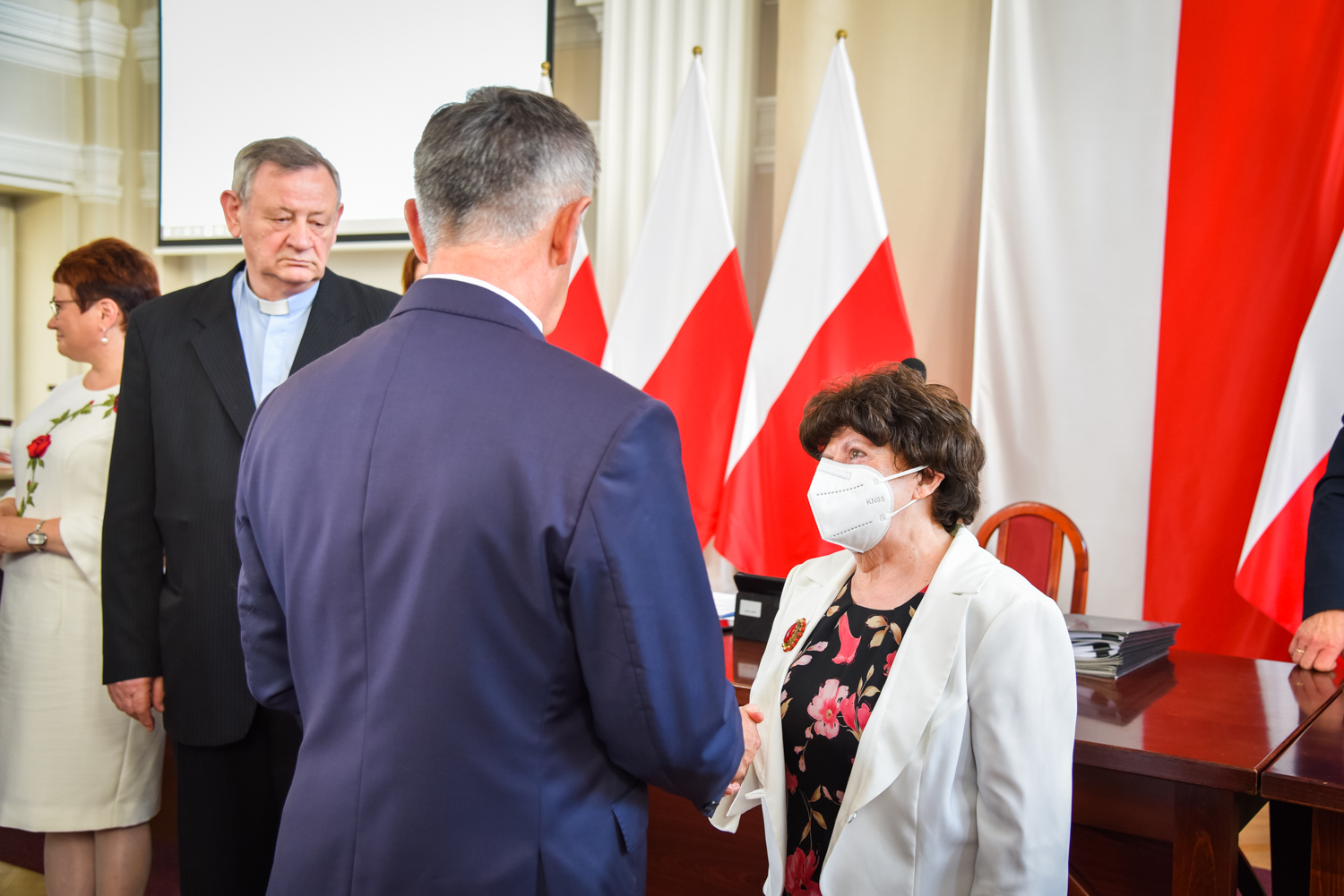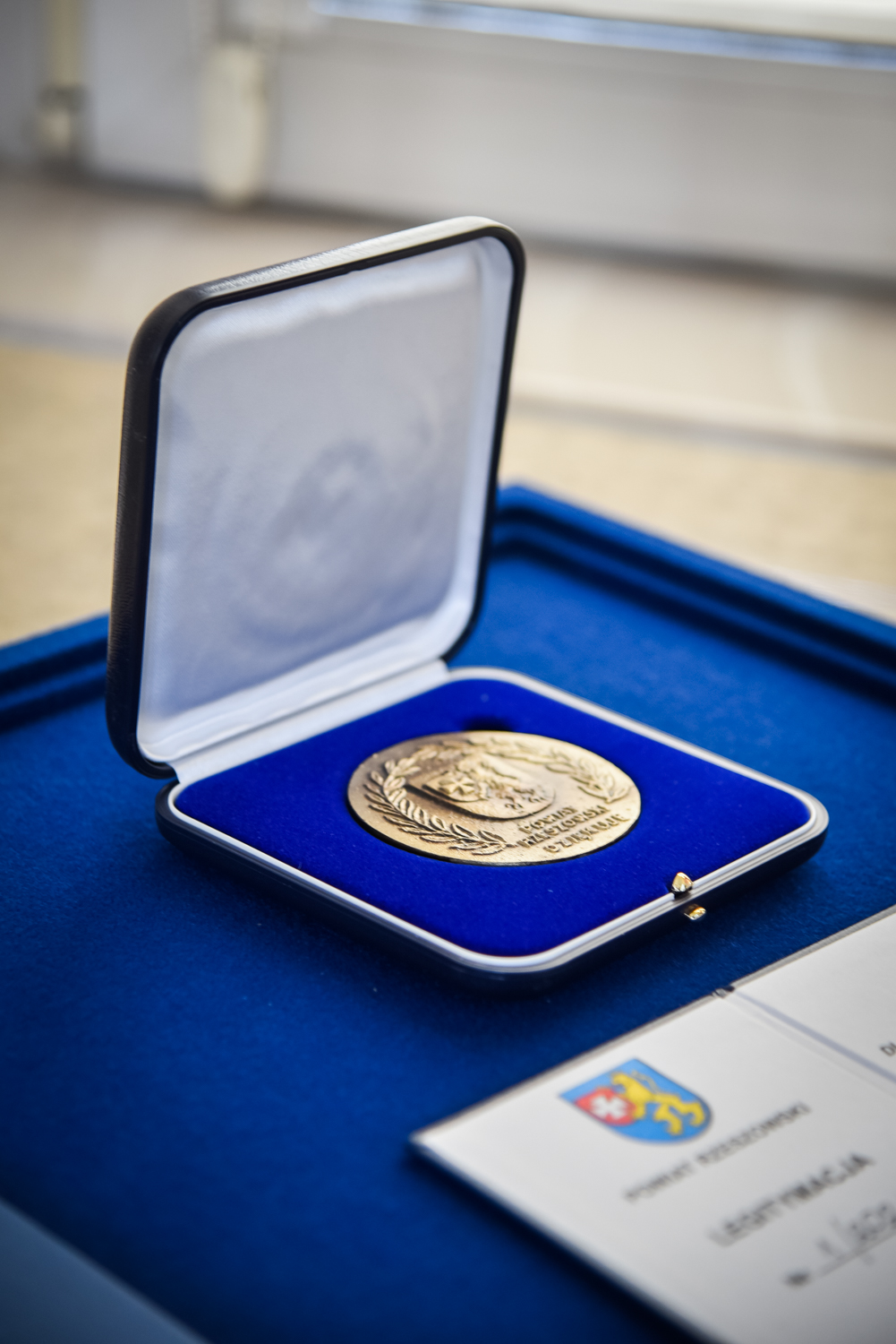Sesja absolutoryjna była też okazją do uhonorowania wybitnych mieszkańców powiatu medalem „Zasłużony dla Powiatu Rzeszowskiego”. Odznaczenia z rąk Starosty Rzeszowskiego odebrali: Anna Dębska – Prezes Warsztatów Terapii Zajęciowej w Zgłobniu oraz ks. Prałat dr Stanisław Janusz – Proboszcz parafii pw. Św. Wawrzyńca w Dynowie. Medal został przyznany także Panu Stanisławowi Tymowiczowi – Prezesowi Stowarzyszenia Przyjaciół Zespołu Szkół Zawodowych w Dynowie.