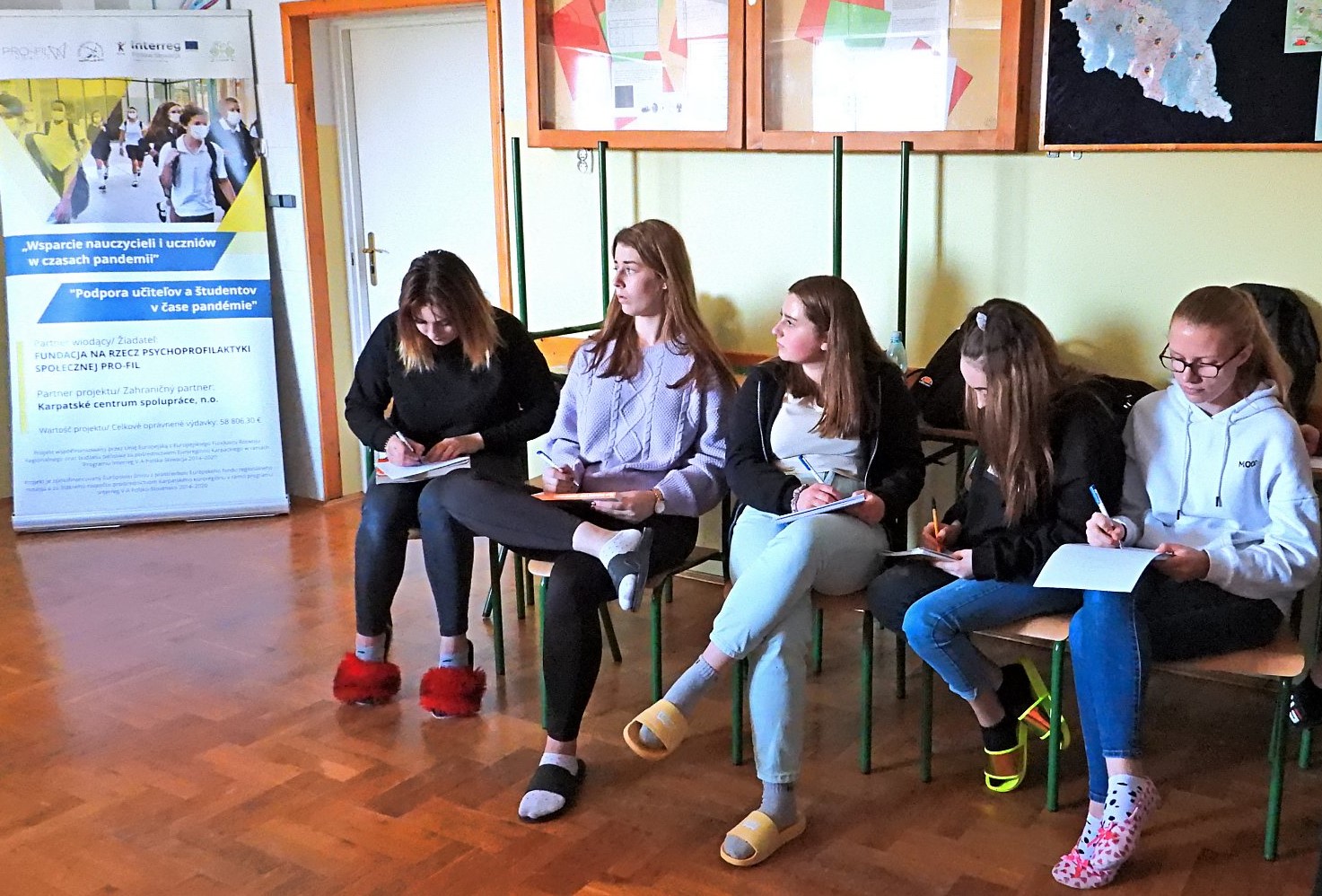 W dniu 4 października 2021r. uczniowie 6 klas Zespołu Szkół Zawodowych im. Kard. Stefana Wyszyńskiego w Dynowie: 1a, 2a, 3a, 1THL, 4THL, 4TPS uczestniczyli w 3 godzinnych (każda klasa oddzielnie) warsztatach w ramach projektu „Wsparcie nauczycieli i uczniów w czasach pandemii” – INT/EK/KAR/3/IV/A/0301 (projekt współfinansowany przez Unię Europejską z Europejskiego Funduszu Rozwoju Regionalnego oraz budżetu państwa za pośrednictwem Euroregionu Karpackiego w ramach Programu Interreg V-A Polska Słowacja 2014-2020).