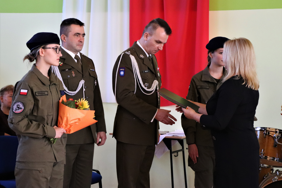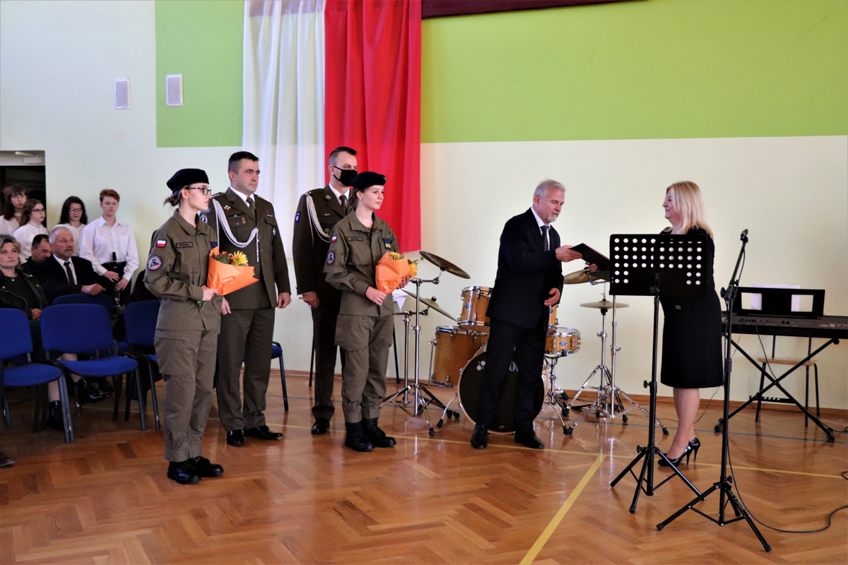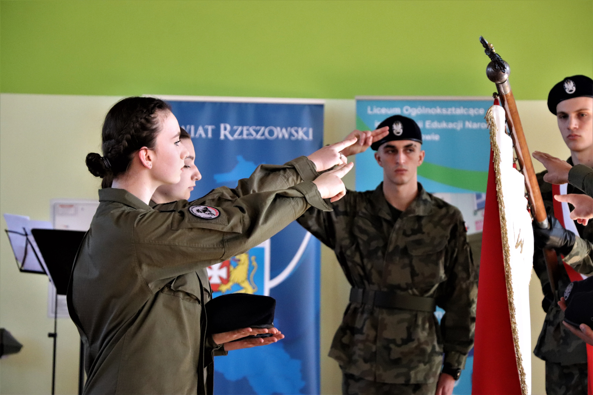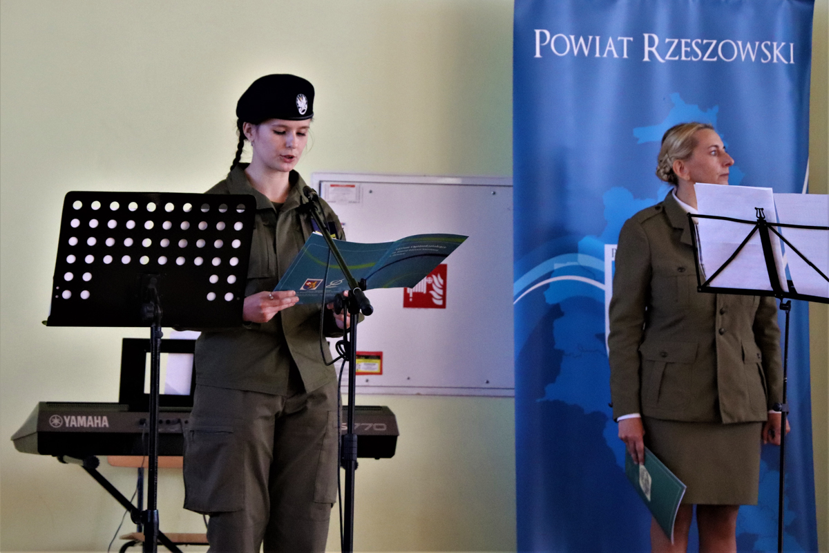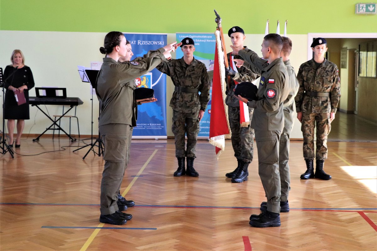 Podziękowała również tym wszystkim, którzy przyczynili się do powstania oddziału przygotowania wojskowego w szkole. Słowa podziękowania oraz kwiaty złożyli również kadeci OPW, dziękując Zarządowi Powiatu Rzeszowskiego na czele ze Starostą Rzeszowskim Józefem Jodłowskim oraz Wicestarostą Rzeszowskim Markiem Sitarzem, dowódcy 3 Podkarpackiej Brygady Obrony Terytorialnej płk Dariuszowi Słocie oraz kpt. Danielowi Bużowi, koordynatorowi OPW z ramienia WOT, Małgorzacie Rauch Podkarpackiemu Kuratorowi Oświaty dowódcy Wojskowej Komendy Uzupełnień w Rzeszowie ppłk. dypl. Januszowi Kwietniowi, dyrektor szkoły Elżbiecie Klaczak-Łach, koordynatorce ds. wojskowych w szkole pani Beacie Trzynie oraz wychowawcy klasy Bogdanowi Peszkowi.
