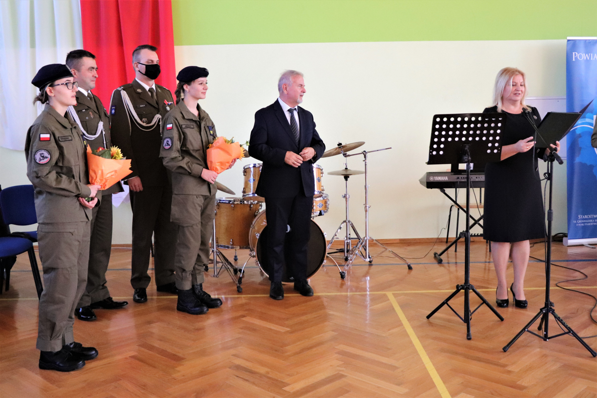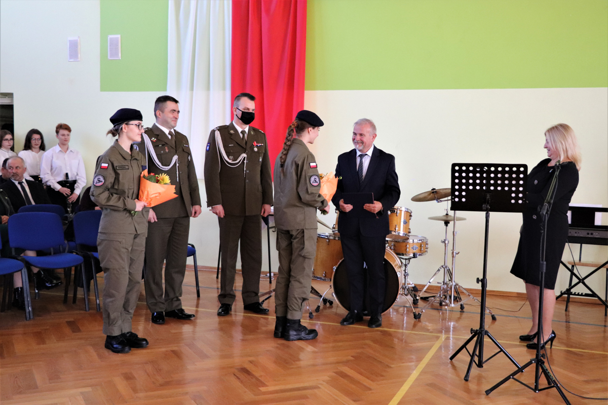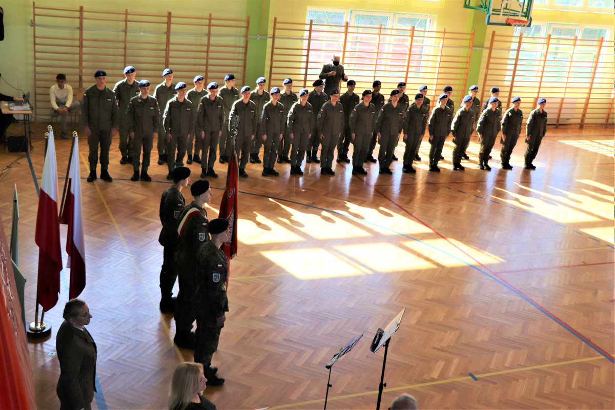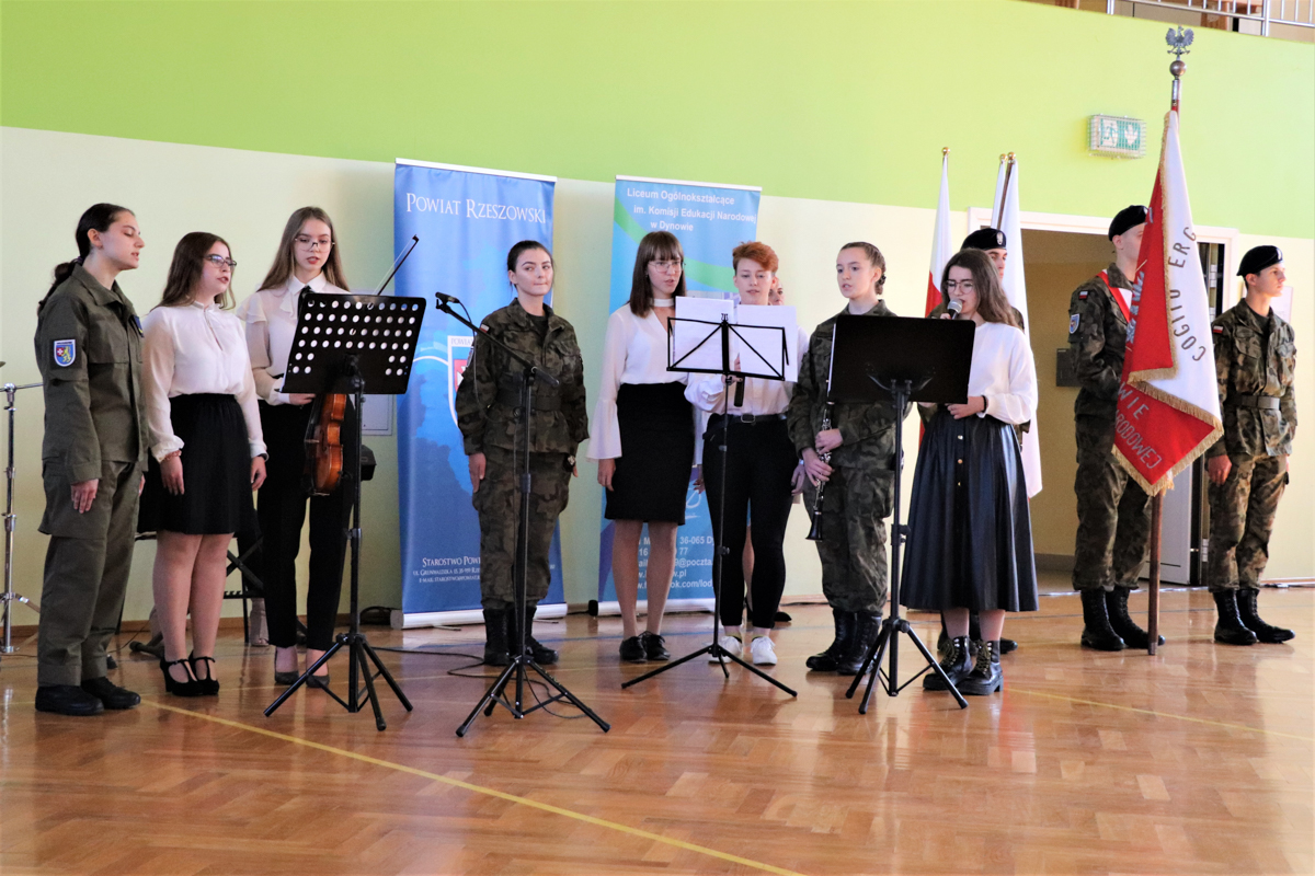 W piątek 8 października 2021r. 30 kadetów drugiej klasy oddziału przygotowania wojskowego złożyło w obecności zaproszonych gości, rodziców oraz starszych i młodszych kolegów ślubowanie. Uroczystość miała miejsce w hali sportowej Liceum Ogólnokształcącego im. Komisji Edukacji Narodowej w Dynowie a uświetnili ją swą obecnością Wicestarosta Rzeszowski Marek Sitarz, Burmistrz Miasta Dynowa Zygmunt Frańczak, mjr Konrad Radzik z Wojskowej Komendy Uzupełnień w Rzeszowie, kpt. Daniel Buż, dowódca 4 kompanii 31 batalionu lekkiej piechoty 3 Podkarpackiej Brygady OT w Rzeszowie, radni Powiatu Rzeszowskiego Ewa Hadam i Aleksander Stochmal, przewodniczący Rady Gminy Dynów Franciszek Pilip, Komendant Policji w Dynowie Mariusz Pilszak, reprezentujący Nadleśniczego Nadleśnictwa Dynów Paweł Pawłowski, przewodnicząca Rady Rodziców pani Irena Baran, emerytowani nauczyciele szkoły oraz rodziny kadetów składających ślubowanie.