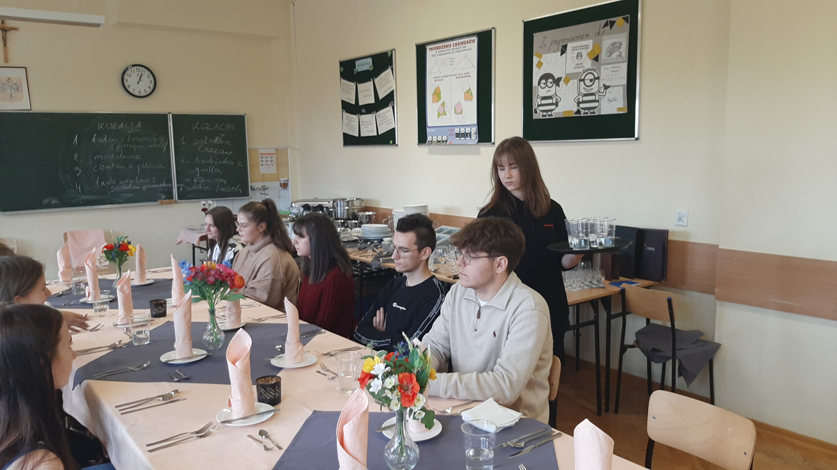 Kurs kelnerski skierowany był do 24 uczniów – 2 gr. po 12 uczniów. W listopadzie jedna grupa zakończyła kurs. Dla drugiej grupy planowane jest zakończenie w styczniu 2022r.